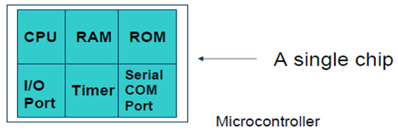 - CPU, RAM, ROM, I/O dan timer menjadi satu pada sebuah chip.