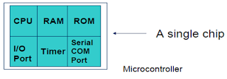 - Mikrokontroler berbeda dari mikroprosesor serba guna yang digunakan dalam sebuah PC, karena sebuah mikrokontroler umumnya telah berisi komponen pendukung sistem minimal mikroprosesor, yakni memori dan antarmuka I/O.